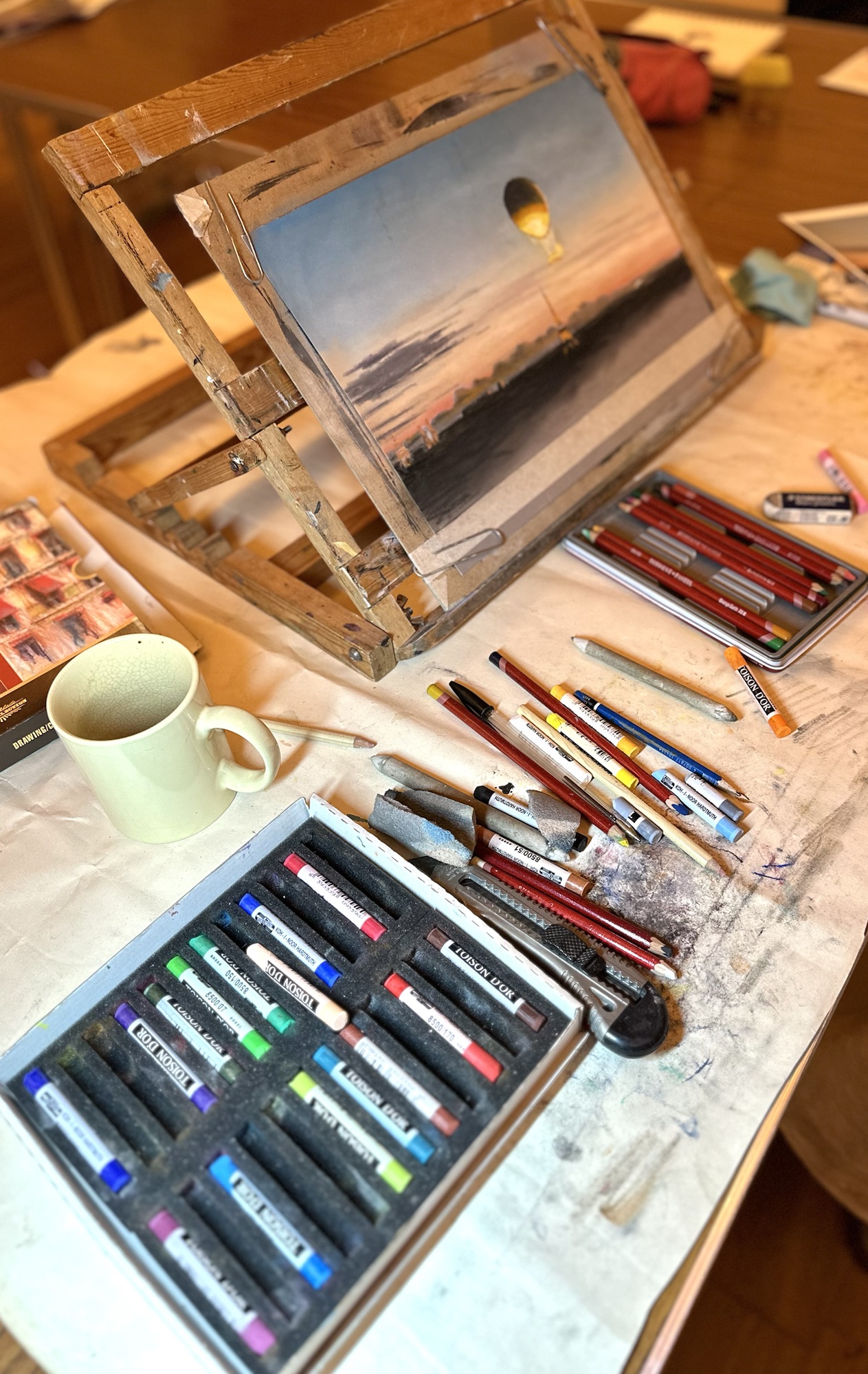 Your own art - have you still got any drawings or paintings that you did when you were young? Choose the same subject, bring along the old picture to the session and then create a new picture as an adult.
