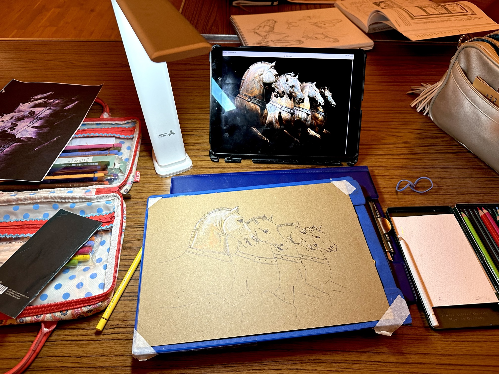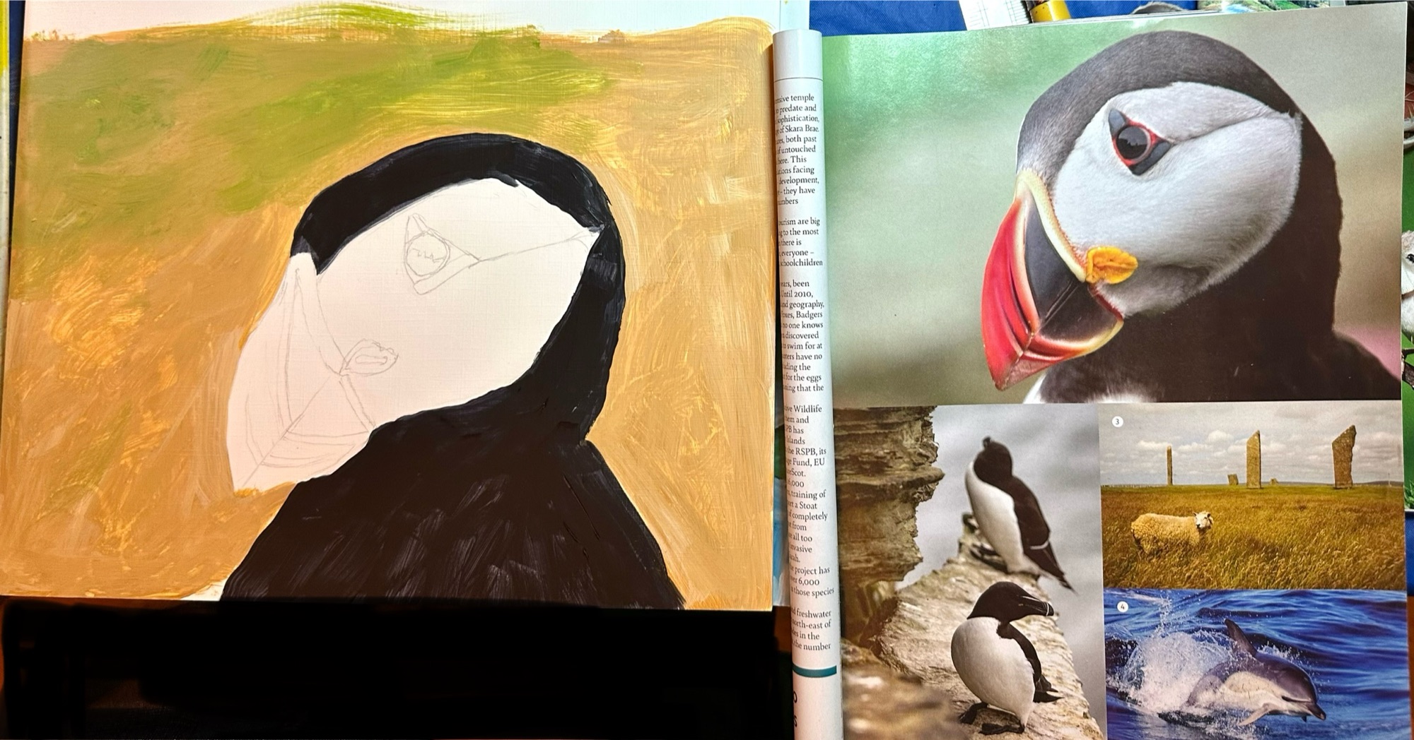 Your own art - have you still got any drawings or paintings that you did when you were young? Choose the same subject, bring along the old picture to the session and then create a new picture as an adult.